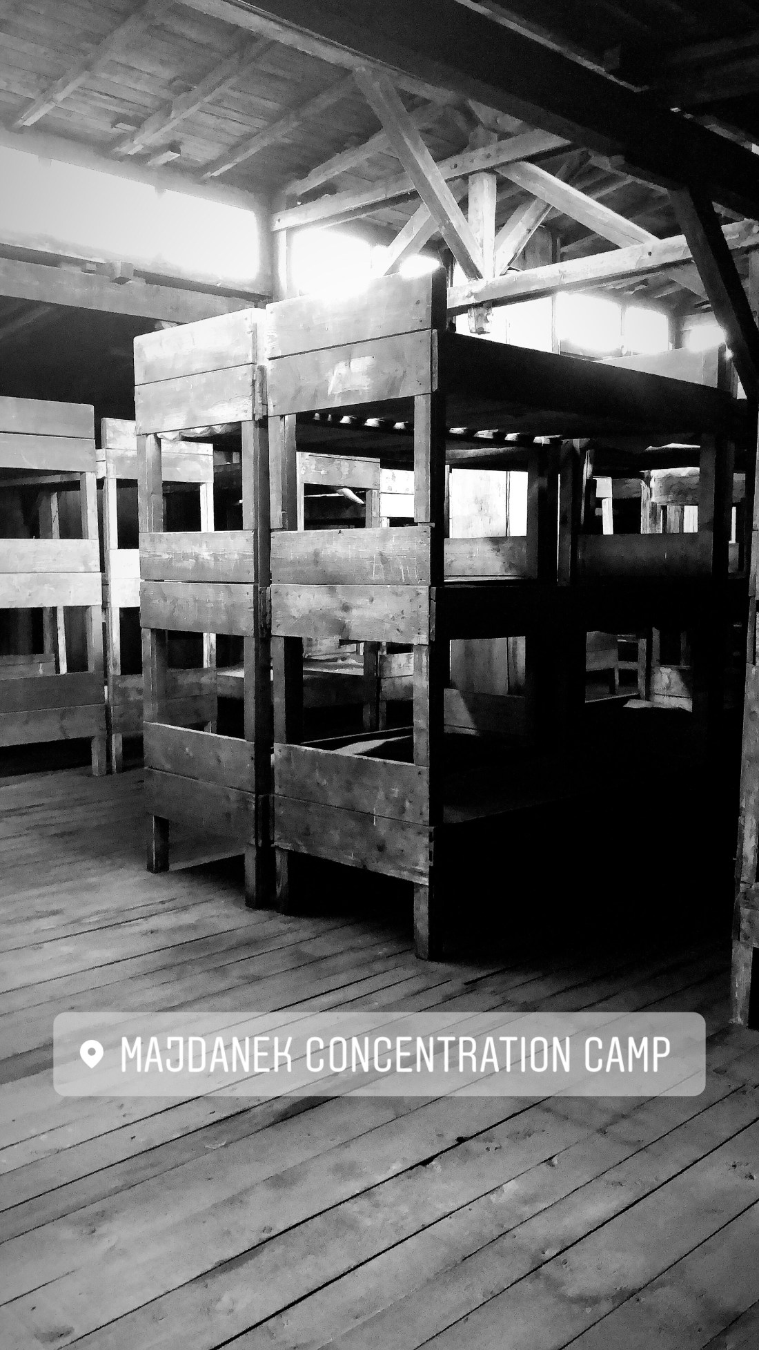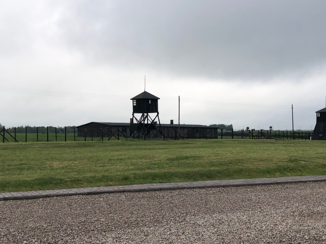 The Majdanek Concentration Camp, a short drive from Lublin, is located on the edge of town and it’s borders are adjacent to houses and civilization. The overcast skies, the chilly air and the persistent light rain combined to create a macabre feeling as we entered the camp.. We entered the camp gate, each of us adorned with an Israeli flag tied at the neck and hanging from our back, signaling to others that Jews still do exist. The camp area was vast, several square miles by our estimate, with boundaries of barbed and electric wire, watch towers and wooden buildings looking like barracks, just like in the films depicting the horrors of the holocaust. We learned about how the Nazis ran the camp in an efficient, cost-effective manner and that very few Jews (or others) left the camp alive. The evil minds of these ruthless and cold psychopaths had no boundaries. Upon entering, Majdanek, the people were led to the first building where, upon demand, and quite methodically, they disrobed, their scalp hair was shaved and they were taken to a room to “shower”. The hair could be sold and a bald head could be easily identified if the person escaped. Their clothes and shoes were collected and chemically disinfected to lessen the chance that the Nazis would pick up a disease. As the process continued, few people were housed in the barracks and the vast majority were put in the gas chamber within hours of arriving at the camp. After walking quite a distance, we arrived at the crematorium building. We saw the room where the corpses were inspected for valuable goods and gold teeth or jewelry located in the intestines would be removed. The next room contained the ovens. Each step in the torturous death was so coldly conceived and well crafted. All of us were emotionally numbed and disgusted by the thought that humans could be so cruel.